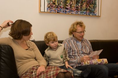 Dan wordt er aangebeld, terwijl iedereen in de kamer is. Wie kan dat zijn?? Gauw naar de deur, en wat zien we daar: