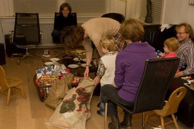 Gauw naar binnen dragen. Mama mag het eerste kadootje uitzoeken.